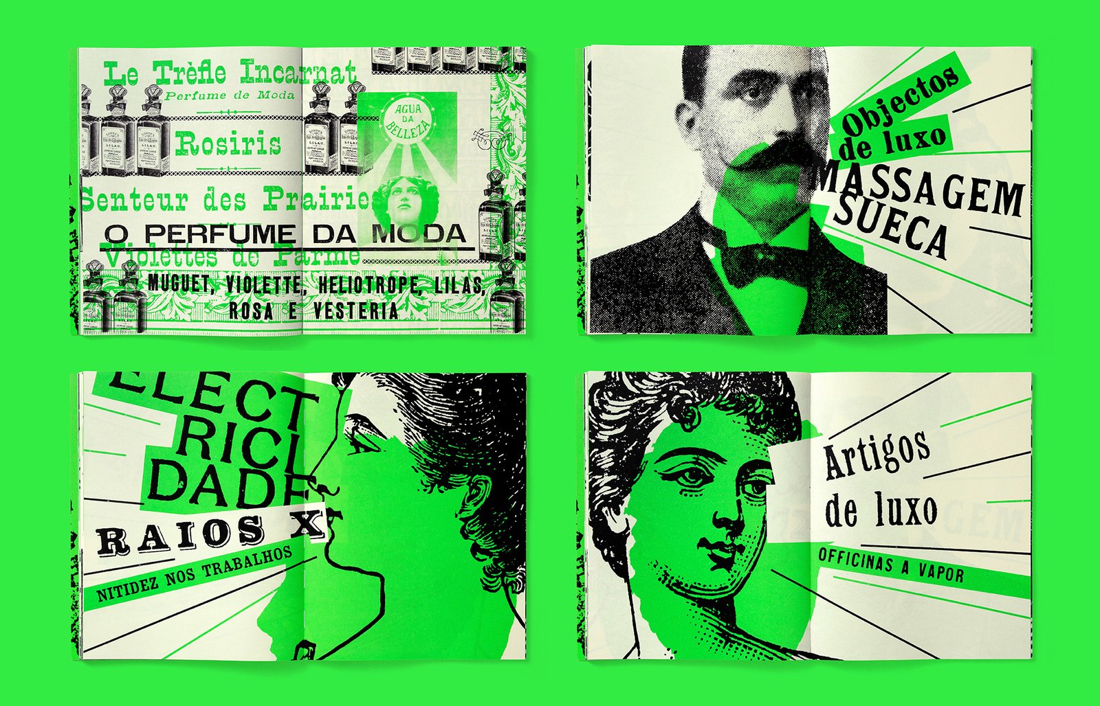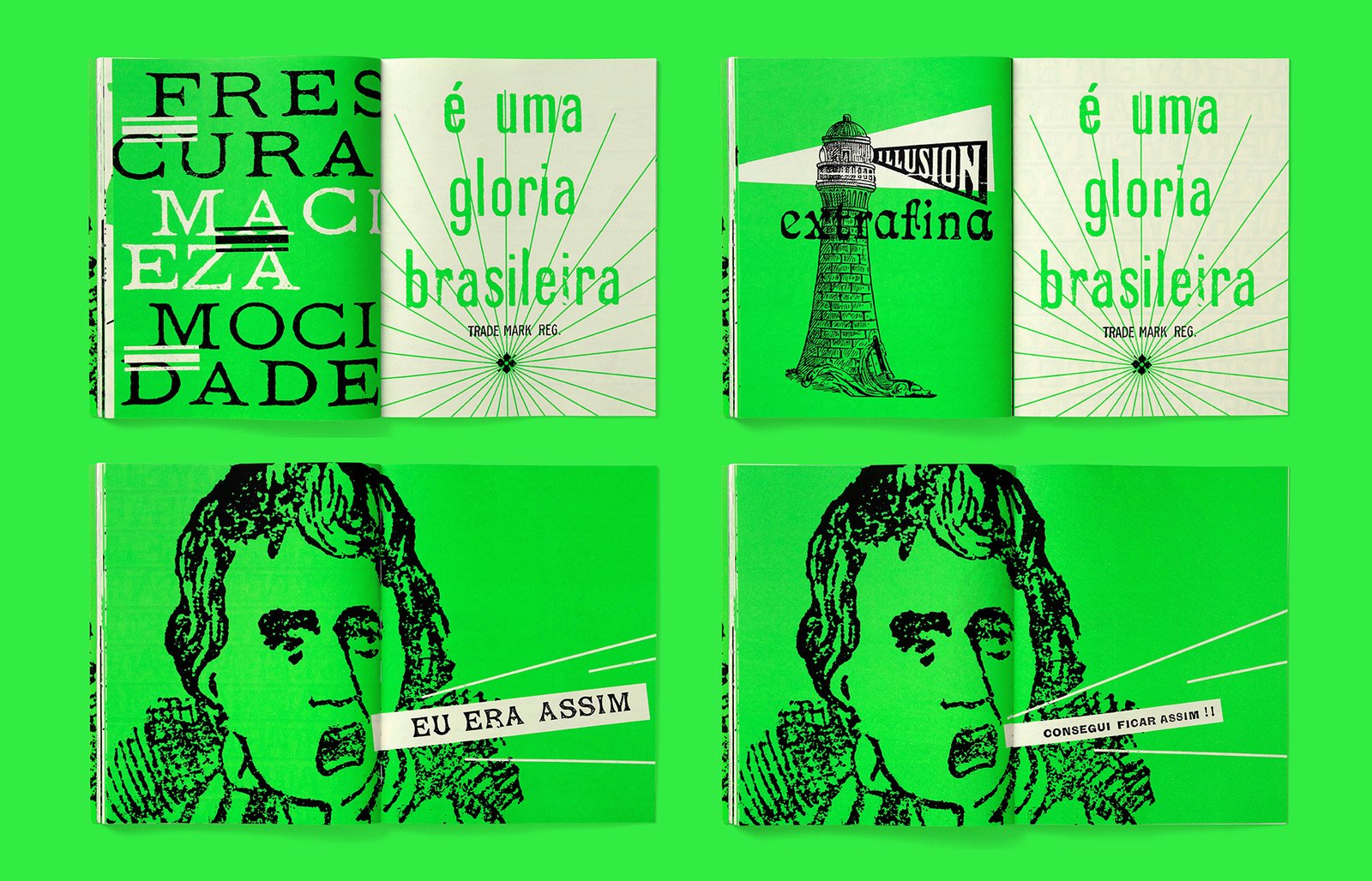 Narrativa visual-tipográfica escrita exclusivamente com fragmentos de anúncios publicados em revistas brasileiras durante as duas primeiras décadas da República, de 1889 a 1910. Uma obra ficcional cômica, se não fosse tão trágica, em torno dos valores de progresso materializados nos produtos e serviços oferecidos para o consumo da elite letrada do Brasil de então.