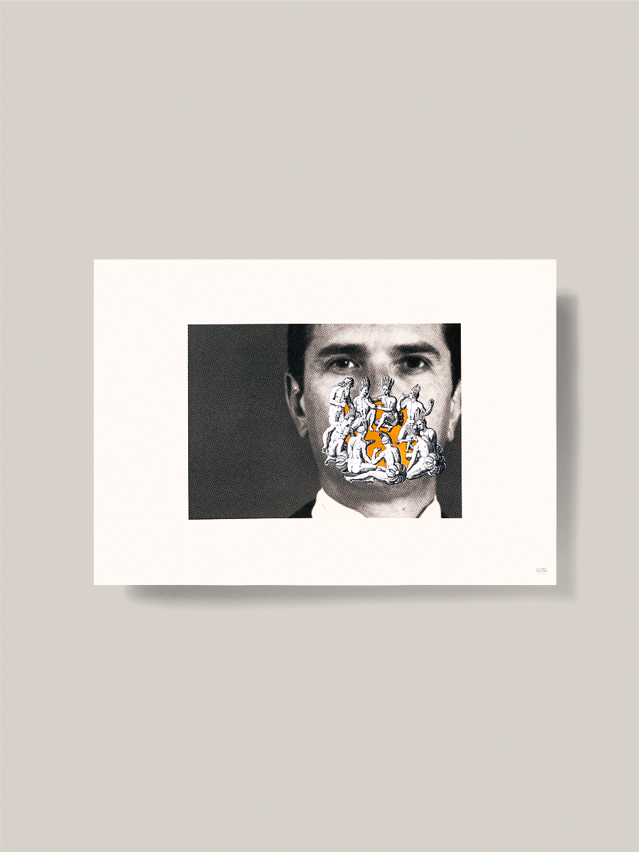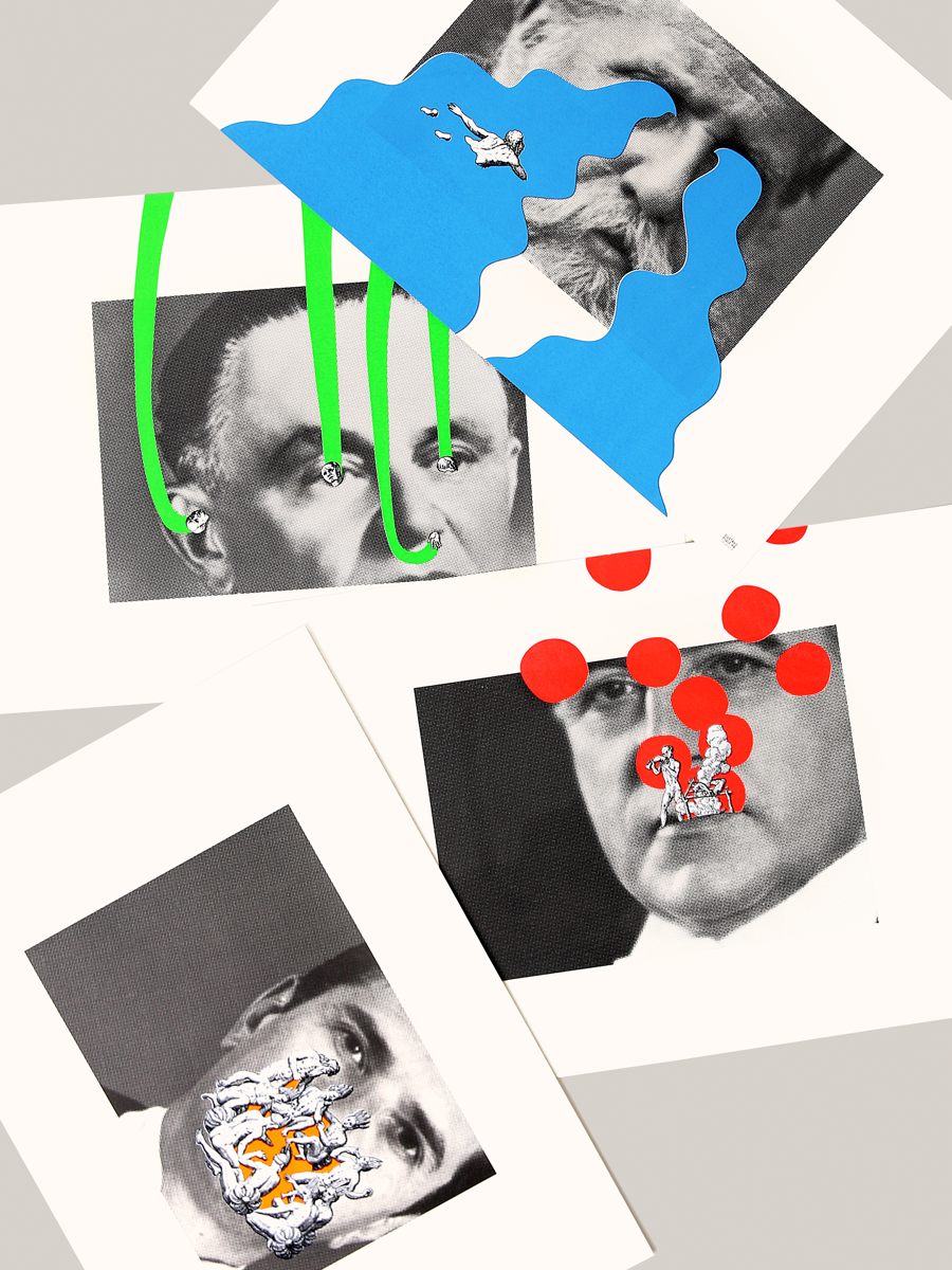 Montagens originalmente criadas para o projeto “Oito Viagens ao Brasil”, nas quais o retrato oficial de alguns dos presidentes e imperadores do país sofre a interferência de recortes provenientes de antigas gravuras do livro de Hans Staden executadas pelo belga Théodore De Bry em 1592.